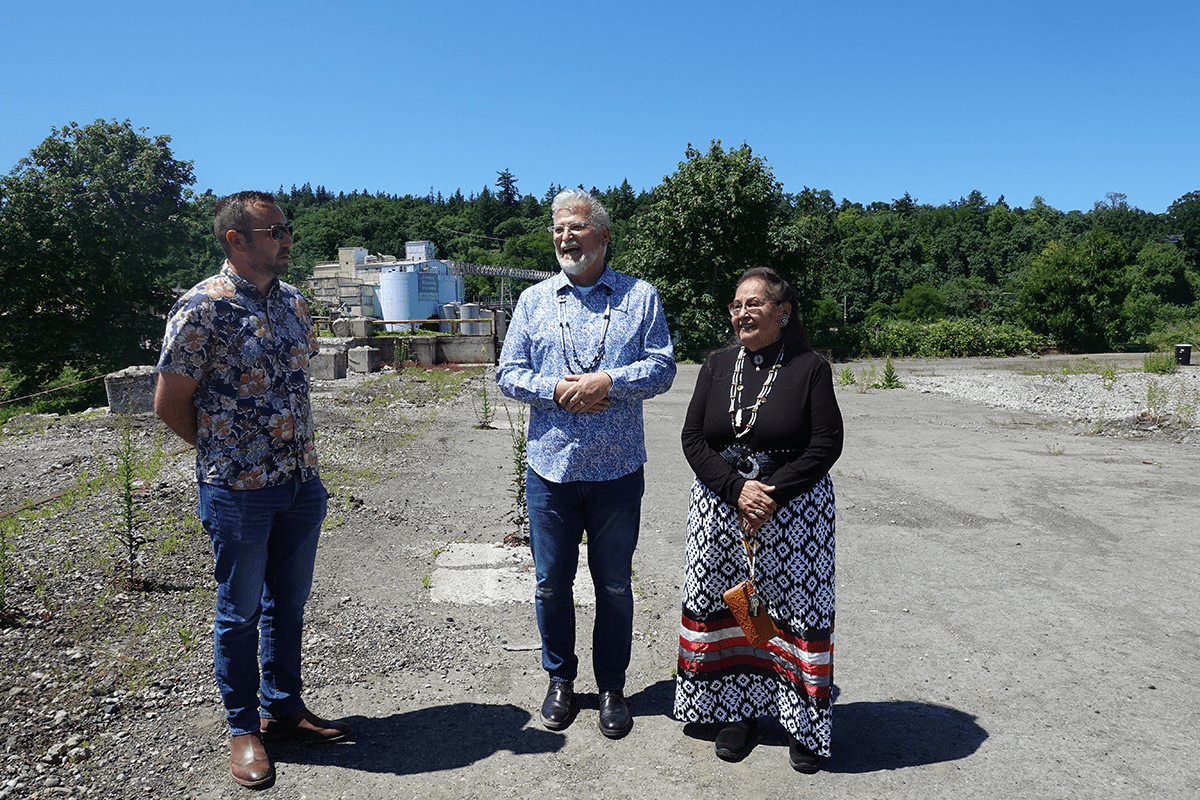 Standing at the half-demolished site today, Willamette Falls can be seen only at a distance, blocked by the view of old buildings waiting to come down. But Grand Ronde is working to change that and create a place for Native people and the broader community to once again enjoy an awe-inspiring view of the falls from the east side of the river.